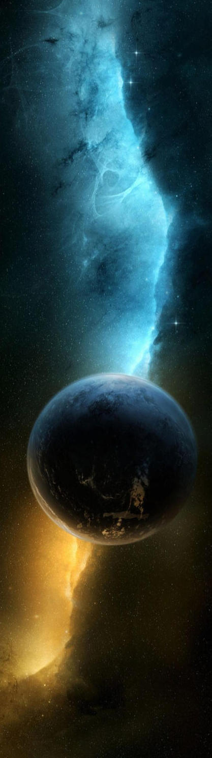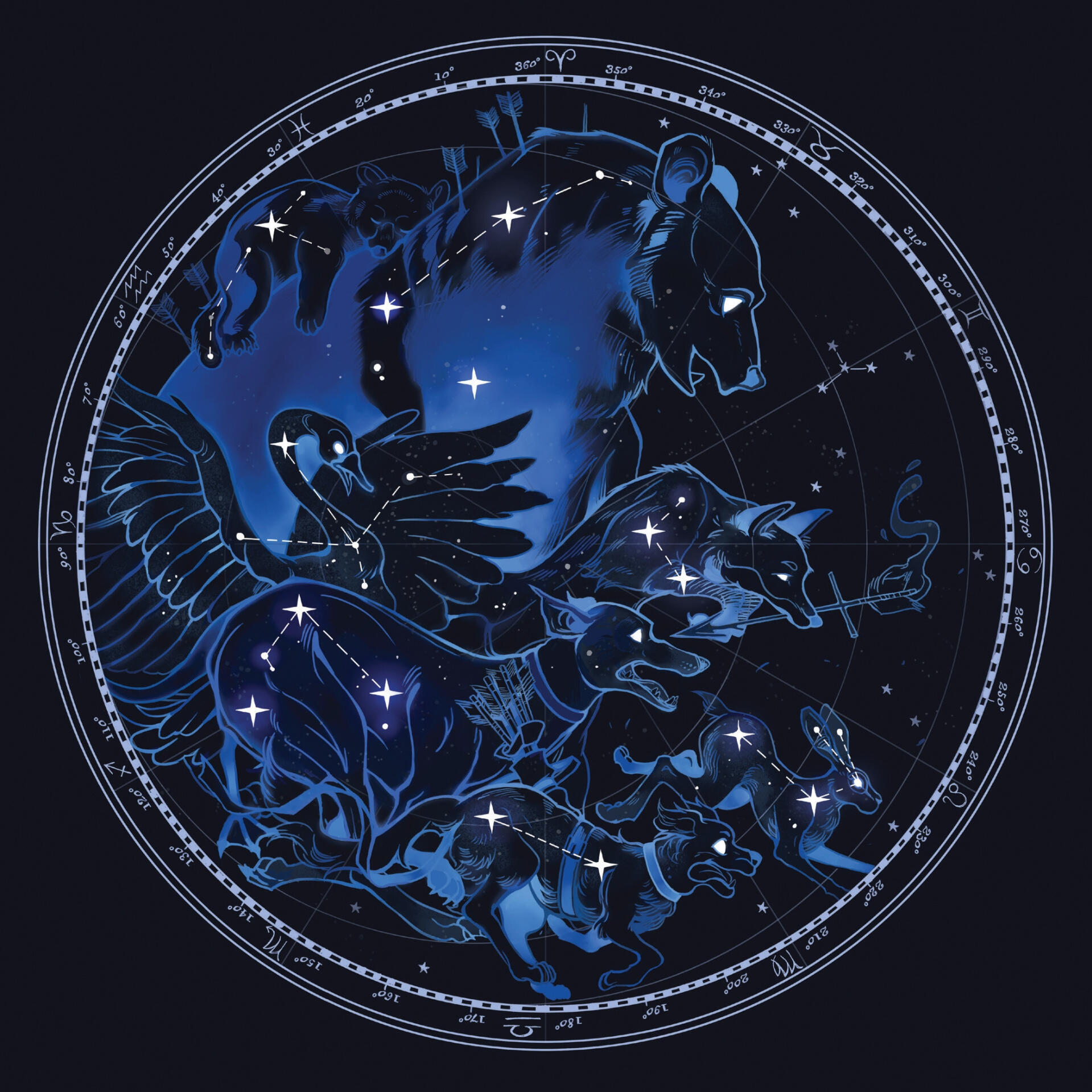 Faint iridescent star charts cover his body from the jaw down. To those knowing how to read them, they would be of the skies of the first astral era.